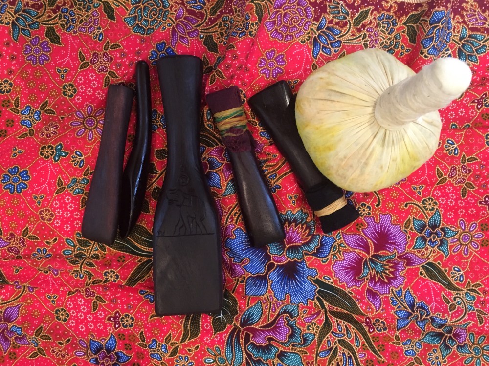 Over the week, I got a bunch of great treatments at the spa but on the last day I tried Tok Sen tapping. For 90 minutes, a woman used the instruments below to knock the tension out of my body and I’ve never felt more relaxed and abused.