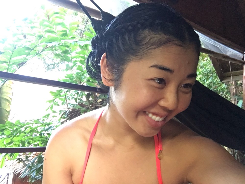 After I had my fill of vegan desserts and steam room time, I got one last treatment at the spa where they massaged my scalp and hair with coconut oil and braided it as such:
